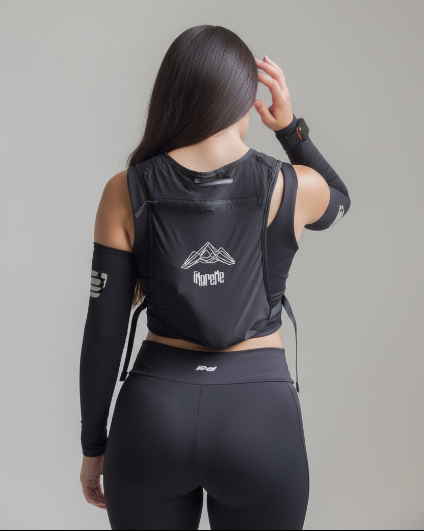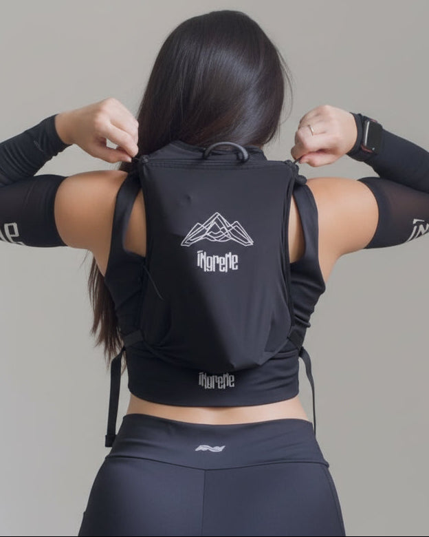 Fabricado em nylon e poliéster, combina resistência e respirabilidade. Os bolsos frontais de acesso rápido permitem carregar soft flasks, celular, suplementos e itens essenciais sem perder tempo.
